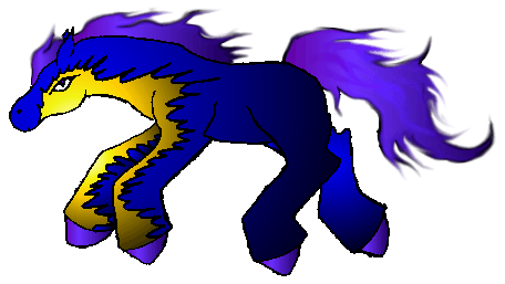 You smile and introduce yourself, and it settles and bobs it's head, "I am Dazzle, and I am of the night..." she emphatically holds absurdly still and you watch, astounded, as the night seemingly folds around her and she blends with the dark. You wonder at this technique--it doesn't seem possible since the user is so purple--and reach out to make sure she's still there, unfortunately, she starts and darts away, and it's a couple minutes before she ventures nervously back out. "I'm sorry, I didn't mean to startle you--" you start, but stop as she shakes her head and snorts, "I didn't think you could see me when I did that," she says disappointedly, and you immediately respond, "but I couldn't! That's why I reached out--I wanted to make sure you were still there." Her head raises higher and he smiles, well, as much as an equine can smile, and tosses her head again, whinnying sharp and clear through the night. She is answered by a second whinny, deeper and more powerful, and a stallion charges into the clearing. He stops and walks quietly over to Dazzle, then turns to face you, acknowledging your presence with a single nod and the word, "traveler." Dazzle looks at him and laughs, "this is Slash, and my only true companion here." She grins at him and he glares at her, and she laughs again, then gallops away, blending with the dark. He chases her, his mane and tail streaming with the wind, but he stands out against the dark. You smaile, and as the last streak of yellow and blue disappears, head back.